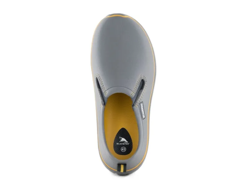 Die Schuhe River in der Farbe Grau und der Größe 47 von Blackfox bestehen aus synthetischem Kautschuk (EVA-Basis) und sind strapazierfähig, wasserdicht und ultraleicht. Dank der hinteren Schnalle und des Gummizugs lassen sie sich leicht anziehen, was sie ideal für Gartenarbeit, das Anlegen eines Gemüsegartens und sogar für den Einkauf auf dem Markt macht.