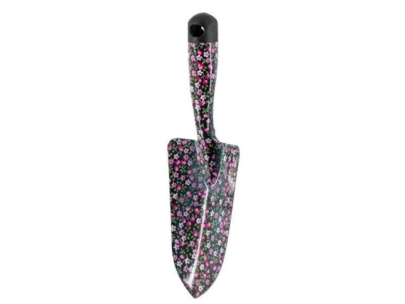 Die Blumenkelle aus Stahl hat Gesamtlänge von 30,5 cm und einen 15 cm langen Griff. Der Griff hat ein Loch, um die Blumenkelle ordentlich zu verstauen. Durch das Blumenmuster eignet sich die besondere Blumenkelle auch als Geschenk.