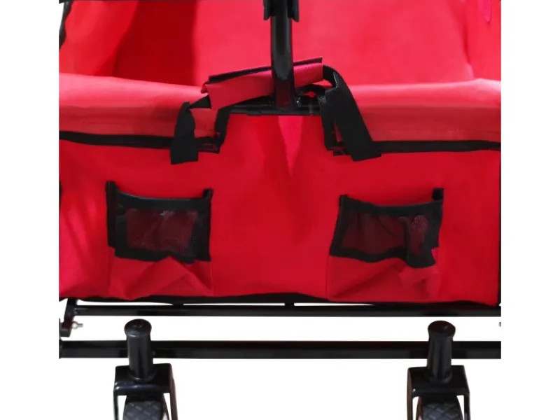 Wenn der Wagen nicht in Gebrauch ist, kann die Zugstange einfach nach oben geklickt werden und der Wagen lässt sich in Sekundenschnelle zusammenklappen. So können Sie den Bollerwagen leicht aufbewahren, wenn er nicht in Gebrauch ist. Außerdem haben Sie immer Platz im Kofferraum Ihres Autos, um unseren Wagen mitzunehmen.