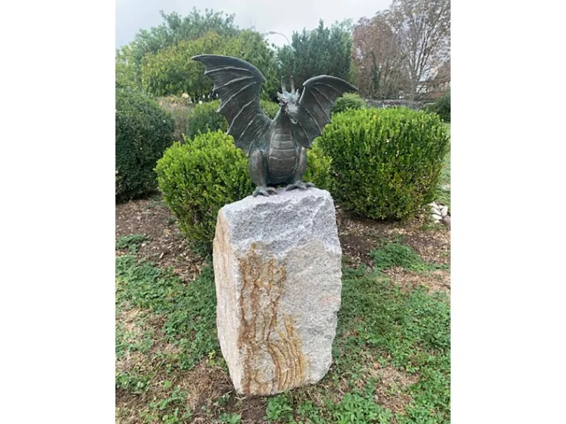 Bronze-Skulptur Drache mit Findling*Rottenecker