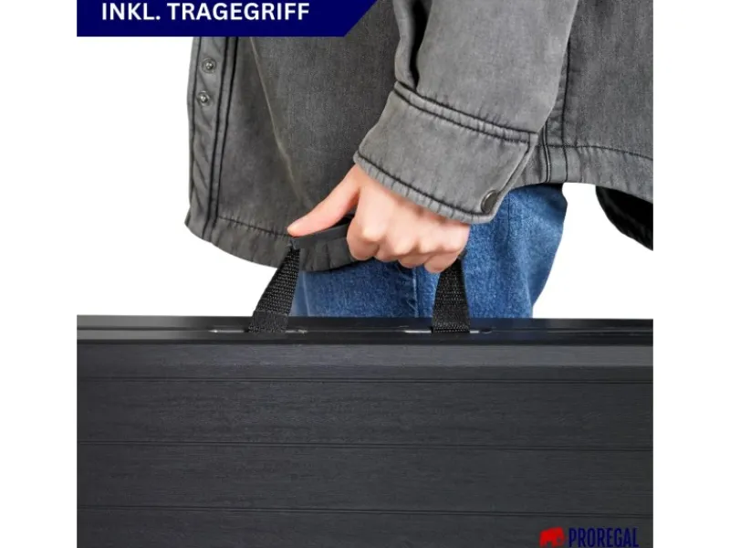 Besonders praktisch: Der Tisch ist klappbar und lässt sich im Handumdrehen zusammenfalten, platzsparend lagern und komfortabel transportieren. Die Tischplatte lässt sich zur Hälfte zusammenklappen – im gefalteten Zustand misst der Tisch nur 74 x 92 cm und ist lediglich 9 cm tief. So lässt er sich mühelos in jedem Kofferraum oder Abstellraum verstauen. Der gummierte, reißfeste Tragegriff sorgt dabei für maximalen Komfort. Für zusätzliche Sicherheit verfügt der Klapptisch über eine Stangenverbindung, die den Tisch beim Transport sicher geschlossen hält.