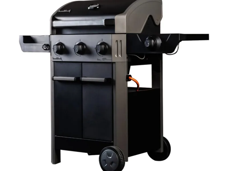 Der Buschbeck Gasgrill Grenada 3 Brenner (9,9 kW) ermöglicht anspruchsvolles Grillen. Der doppelwandige Deckel, die großen Seitenablagen und der integrierten Seitenbrenner mit 3,3 kW sorgen für herrliches Grillvergnügen. So können parallel zum Grillen auf dem Gusseisen-Grillrost auch weitere Speisen im Topf oder Pfanne auf dem Seitenbrenner zubereitet werden. Die verbauten Edelstahl-Brenner schaffen mit einer Gesamtleistung von 9,9 kW (Modell 3 Brenner mit 2 Türen) ausreichend Hitze. Dank dem im Deckel eingebauten Thermometer, lässt sich die Temperatur leicht kontrollieren, wodurch ein gleichmäßiges Grillergebnis erreicht werden kann. Der Unterbau verfügt über zwei Räder, die einen bequemen Platzwechsel ermöglichen. Als kleine Ergänzung ist am Grill ein praktischer Flaschenöffner angebracht. Die Lieferung erfolgt zerlegt mit Aufbauanleitung.