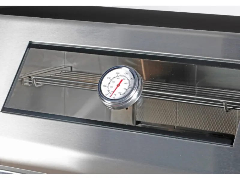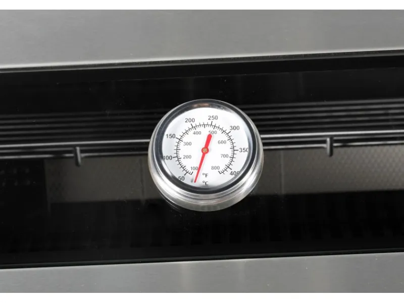– Edelstahlhaube mit integriertem Thermometer und großem Sichtfenster