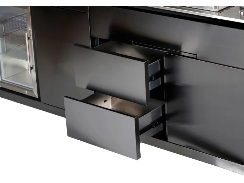 Ein besonderes Highlight ist der einklappbar Wasserhahn, wodurch die Arbeitsfläche erweitert werden kann. Mobilität gewährleisten die 12 feststellbaren Rollen. Eine UV-resistente Schutzhülle und die CE-Zertifizierung runden das Angebot ab, machen das Modell Brighton zur idealen Wahl für Outdoor-Küchenenthusiasten und versprechen Langlebigkeit und Sicherheit.
