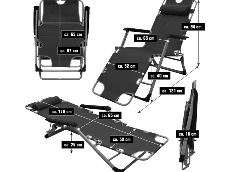– Maße (als Liege): ca. 178 x 65 x 36 cm