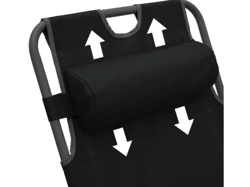 Dank PVC-Beschichtung ist das 600D Oxford-Textil-Gewebe strapazierfähig, witterungsbeständig und formstabil. Die abnehmbare Stoffauflage wird mit Klettverschluss am Hochlehner befestigt, sie ist bei 30° waschbar. Am Gummiband kannst Du die Nackenstütze ganz einfach verstellen.