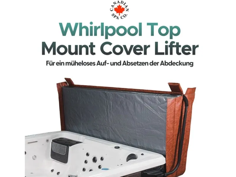 Die randbefestigte Abdeckhilfe für Whirlpools von Canadian Spa ist die perfekte Wahl in engen Bereichen, wo Platzmangel ein Problem ist. Die randbefestigte Abdeckhilfe macht das Entfernen und Aufbewahren Ihrer Whirlpool-Abdeckung praktisch und einfach. Diese Abdeckhilfe ist die ideale Wahl, um Ihren Whirlpool zu ergänzen. Es verwandelt den Prozess der Entfernung Ihrer Abdeckung in ein schnelles, einhändiges Verfahren und reduziert die Abnutzung. Die Abdeckhilfe wird direkt an den Whirlpool angebaut und passt für bis zu 240 cm breite Whirlpools. Bitte beachten Sie: Dieses Produkt benötigt einige Werkzeuge für den Aufbau und die Passung.