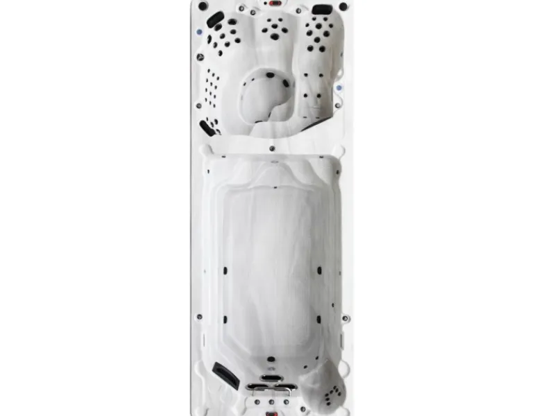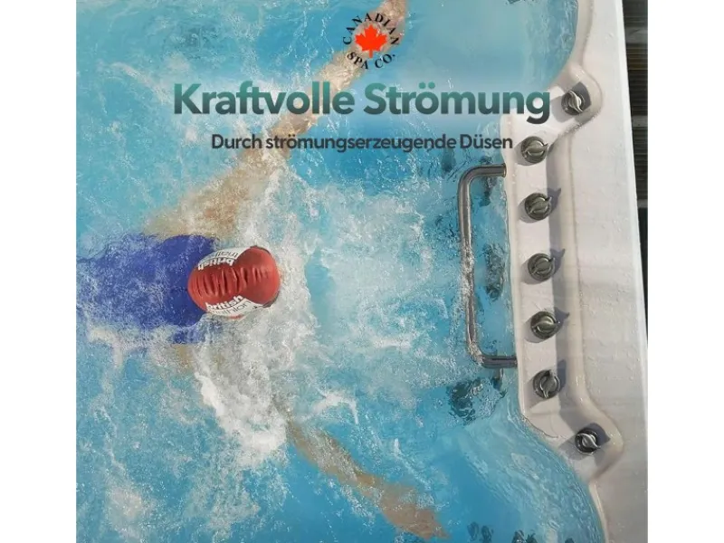 Eine Vielfalt an austauschbaren Massagedüsen mit verschiedenen Massageformen stehen zur Verfügung. Sie sind zur individuellen Druckeinstellung leicht greifbar und artritisfreundlich. Die strömungserzeugende Düsen liefern einen starken, kontinuierlichen Wasserstrahl, der gerades und ebenes Schwimmen unterstützt. Insgesamt 4 Pumpen fördern bis zu insgesamt 4480 Liter pro Minute vor der Lufteinblasung. 6 Luftventile, die eine individuell einstellbare Lufteinblasung in das Wasser ermöglichen, bieten einen erhöhten Durchfluss. Zudem verfügt er über verschiedene Steuerungsmöglichkeiten womit der Strom nach den persönlichen Wünschen konfiguriert werden kann.
