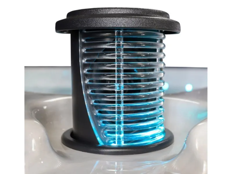 Das Premium-Spa-Beleuchtungspaket mit zwei großen Unterwasser-LED-Leuchten, erhellen das Gewässer. Das Spa-Ambiete wird durch 28 weitere LED-Leuchten am Umfang verbessert. Zwei hintergrundbeleuchtete, kaskadierende Wasserfall-LED-Leuchten schmücken das Ambiete zusätzlich aus. Die LED-Beleuchtung verfügt über berührungsgesteuerte Synchronbeleuchtung mit Stimmungseffekt-Optionen in einer Vielzahl von Farben.