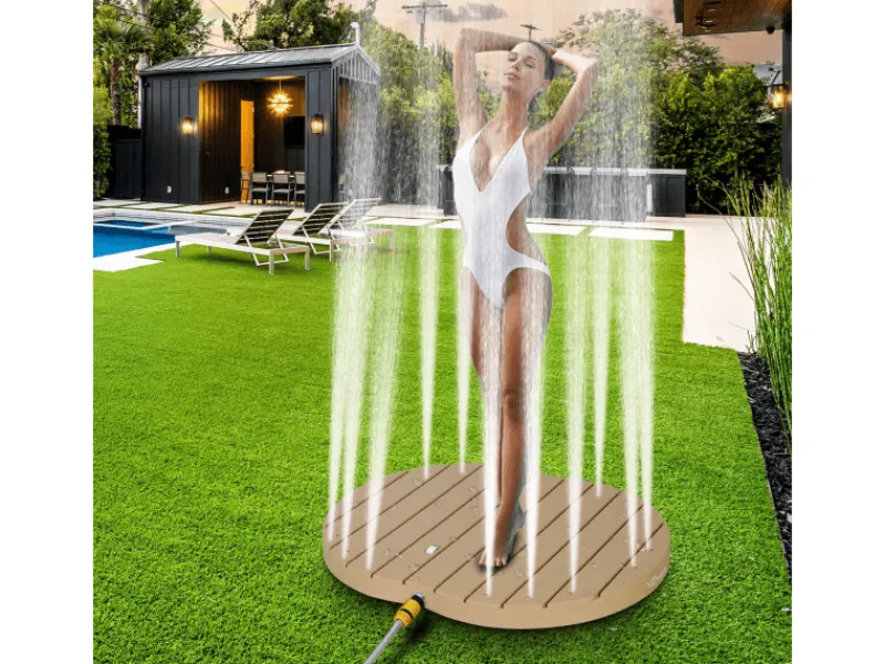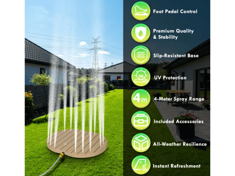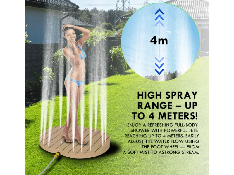 Diese innovative Gartendusche mit Bodensprühfunktion ist Ihre ideale Wahl. Sie benötigt keinen Strom und wird allein durch den Wasserdruck aus Ihrem Gartenwasseranschluss aktiviert. Der beeindruckende Wasserstrahl erreicht eine Höhe von bis zu 4 Metern. Sie bietet nicht nur Erwachsenen eine angenehme Abkühlung, sondern ist auch sicher für Kinder und Haustiere – perfekt für spielerischen Wasserspaß im Freien.