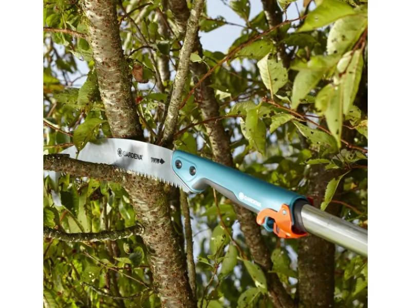 Der Griff mit Softkomponente und zusätzlichem Stopp macht die Säge bei ziehenden Bewegungen abrutschsicher.