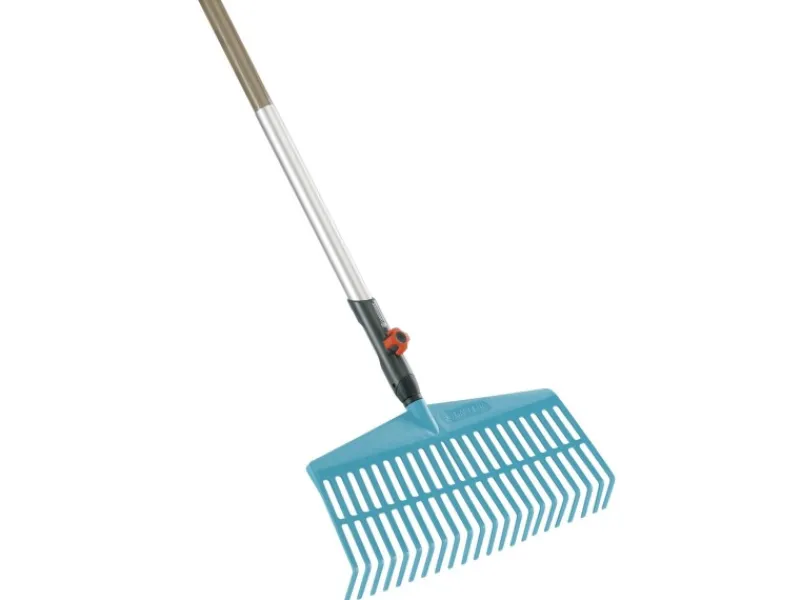 Stabile Zinken aus hochwertigem Kunststoff, angeordnet zu einer Arbeitsbreite von 43 cm, erlauben ein leichtes, handliches und rasenschonendes Arbeiten.