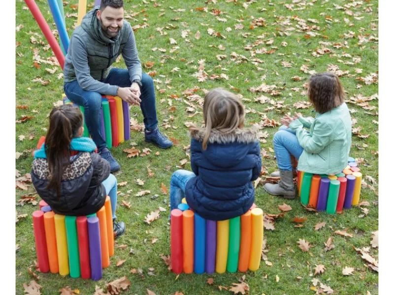 Die Schwimmnudel ist in Blau, Rot, Grün und Gelb erhältlich.