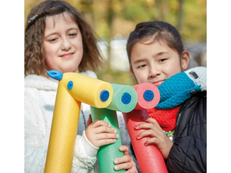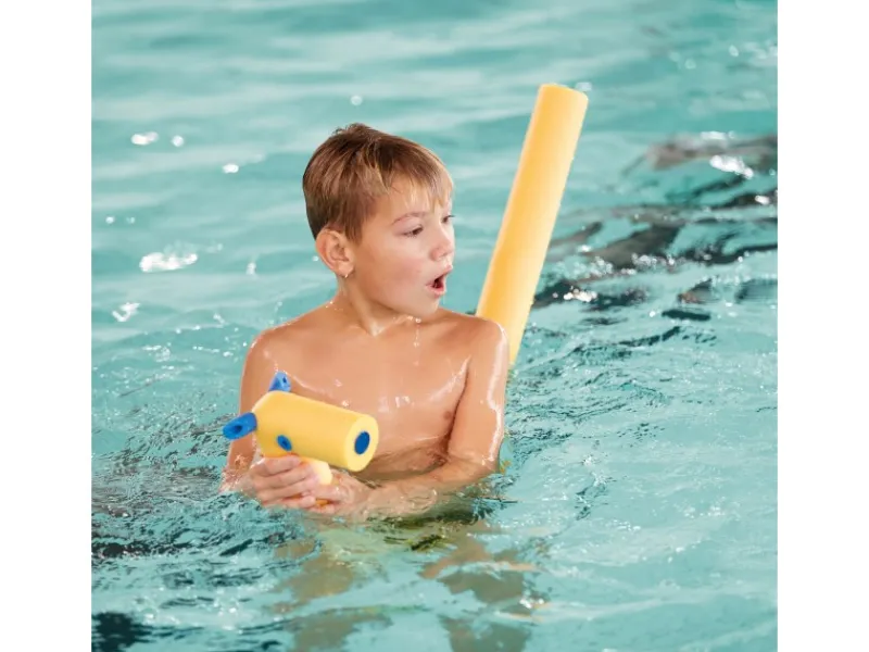 Die Schwimmnudel ist in Blau, Rot, Grün und Gelb erhältlich.
