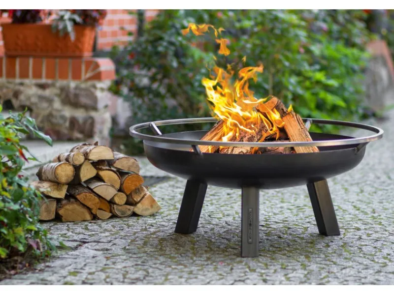 Die Feuerschale Porto verfügt über drei stabile Füße, die für einen sicheren Stand sorgen. Der umlaufende Tragegriff ermöglicht es, die Feuerstelle problemlos an den gewünschten Ort zu transportieren.
