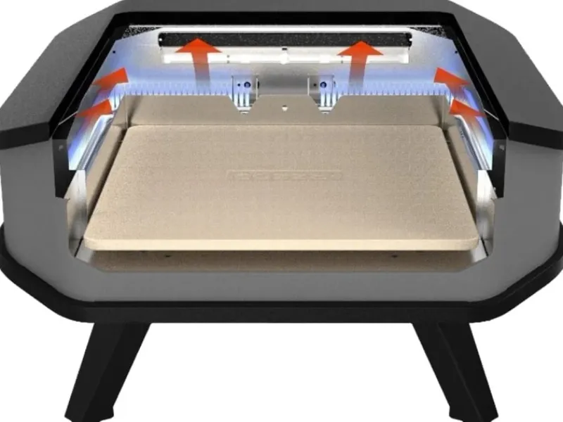 Mit einer großen Öffnung von 36 cm x 8 cm ist der Ofen einfach zu bedienen und bietet ausreichend Platz für große Pizzen bis zu Ø 34 cm. Der Pizzaofen erreicht nach kurzer Vorheizzeit von ca. 20 Minuten schon sehr hohe Temperaturen und kann deshalb Pizza und Flammkuchen in Restaurant-Qualität zubereiten. Der Ofen ist leicht zu transportieren, sodass Sie ihn auf einem Balkon, einer Terrasse oder auf dem Campingplatz verwenden können.