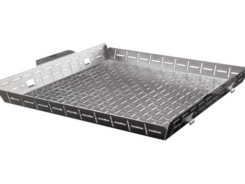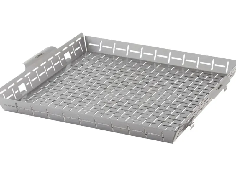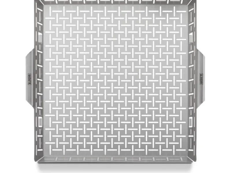 Der extra große Weber Crafted Grillkorb (Maße: 40 cm x 41 cm) ist dank seiner hohen Seitenwände sowie gelochten Oberfläche ideal, um die in ihm zubereiteten Speisen gut zu verteilen und Luft zirkuliern zu lassen. Der Grillkorb platziert die Speisen nahe an der Flamme, ohne dass diese zwischen die Roste fallen können.