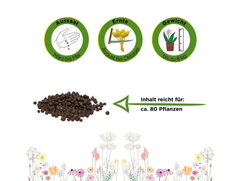 Riesen-Kohlrabi mit butterzartem, vorzüglichem Geschmack. Kann bis zu 8 kg schwer werden, bleibt jedoch weitgehend zart und schmackhaft. Späte Sorte für den Freilandanbau.Aussaat: Aussaat von März bis April im Haus. Von April bis Mai ins Freiland. Ca. 0,5-1 cm tief mit 50 cm Abstand. Mit Erde bedecken und feucht halten.Keimung: Keimt bei 16-24°C Bodentemperatur nach 8-14 Tagen. Keine Tiefen Temperaturen, Schossgefahr.Ernte: Ernte von August bis Oktober.Standort: Sonniger Standort mit nährstoffreichem, tiefgründigem Boden. Gleichmäßig feucht halten, damit die Knollen nicht platzen.Inhalt: reicht für ca. 80 Pflanzen