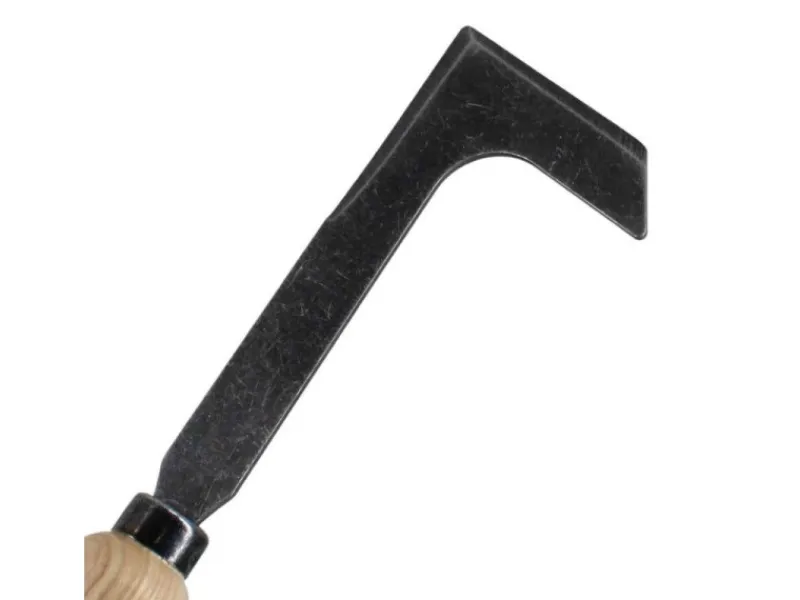Der Holzgriff aus Esche liegt gut in der Hand und kann durch das Aufhängeloch einfach verstaut werden.