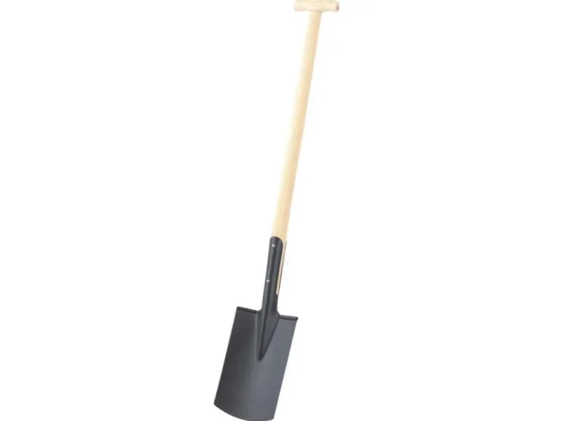 Das hochwertige Schaufelblatt ist aus gehärtetem Stahl gefertigt und pulverbeschichtet. Die aufgesetzten Tritthülsen am Spatenkopf unterstützen die Arbeiten im Garten optimal.