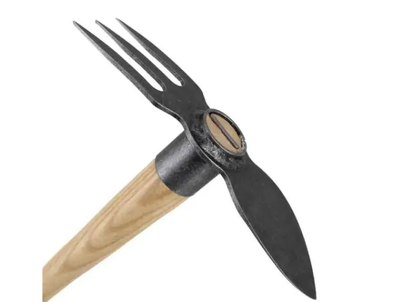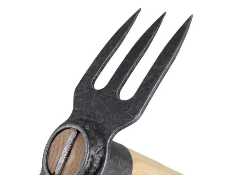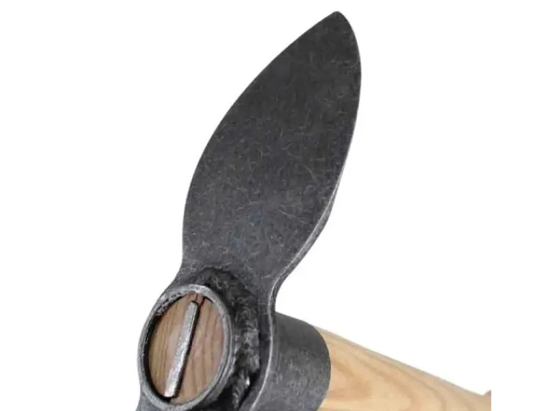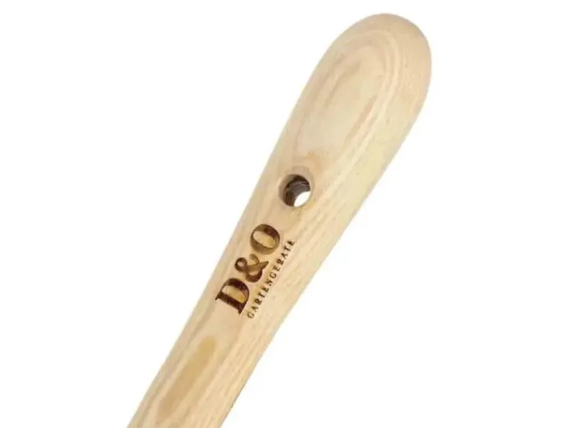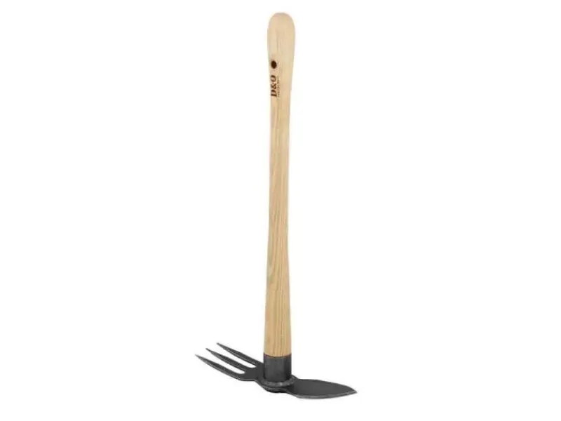 Mit dem längeren Holzstiel aus Esche ist das Arbeiten einfacher und rückenschonender. Durch das Aufhängeloch im Griff lässt sich die Doppelhacke einfach verstauen.