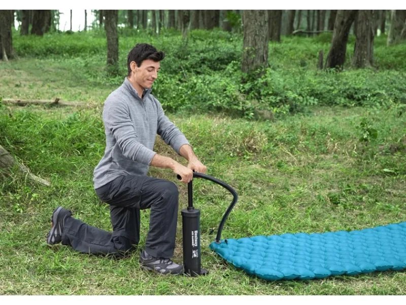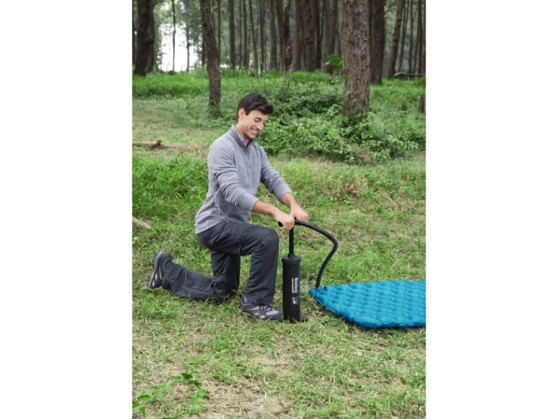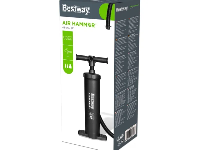 Unabhängig vom Stromnetz erweist sich diese Air Hammer Doppelhub-Kolbenpumpe von Bestway als nützlicher Begleiter für Camping & Freizeit. Besonders effizient: Mit jedem Hub durch den 80 cm Schlauch, sei es durch Ziehen oder Drücken, wird Luft gepumpt. Durch Umstecken des Schlauches an der Pumpe kann sie auch zum Luftabsaugen verwendet werden, wodurch das Zusammenpacken der aufblasbaren Artikel nach der Nutzung viel schneller geht. Die Pumpe ist mit Adaptern für verschiedene Ventile ausgestattet. Das Luftvolumen beträgt ca. 2 x 2.000 cm².