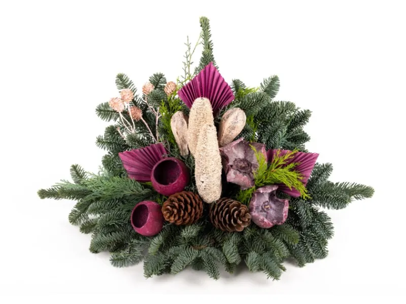 Grabgesteck mit frischen Nobilis- und Thuja-Zweigen
