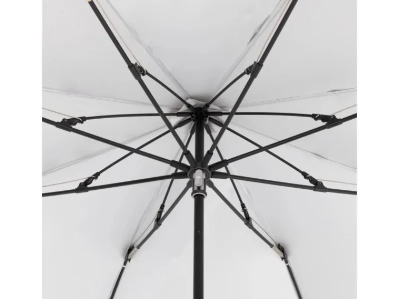In der Verarbeitung und Materialauswahl weiß der Schirm durch Mast und Streben aus leichtem, aber stabilem Aluminium zu überzeugen. Die widerstandsfähige Bespannung aus 100 % Polyester-Gewebe (180 g/m²) ist robust, abnehm- und waschbar. Außerdem zeichnet sie sich durch eine sehr gute Lichtechtheit aus, was bedeutet, dass das Material auch bei starker Sonneneinstrahlung kaum ausbleicht. Dank des Lichtschutzfaktors von UV 50 kannst du den Sommer unbeschwert genießen.