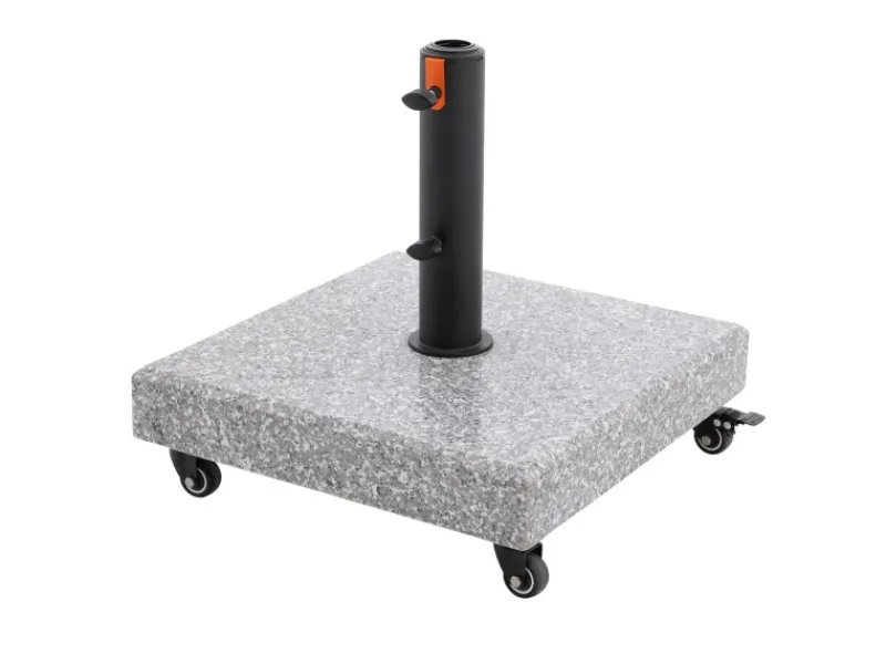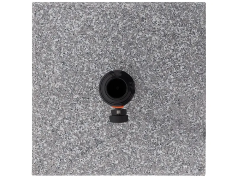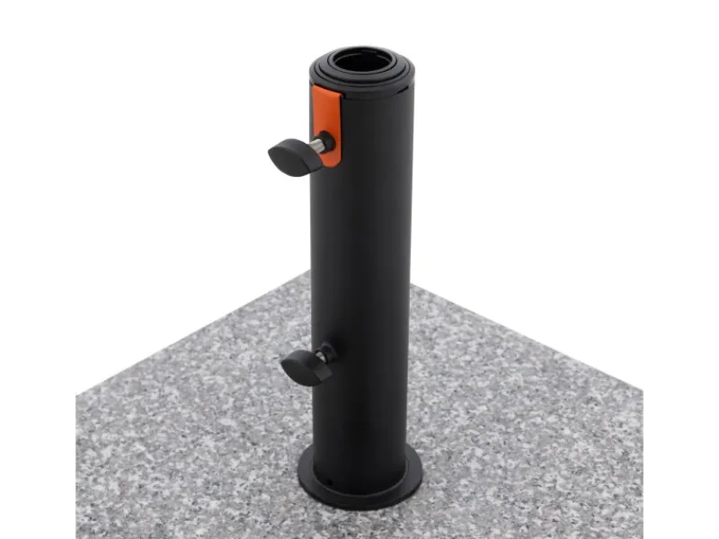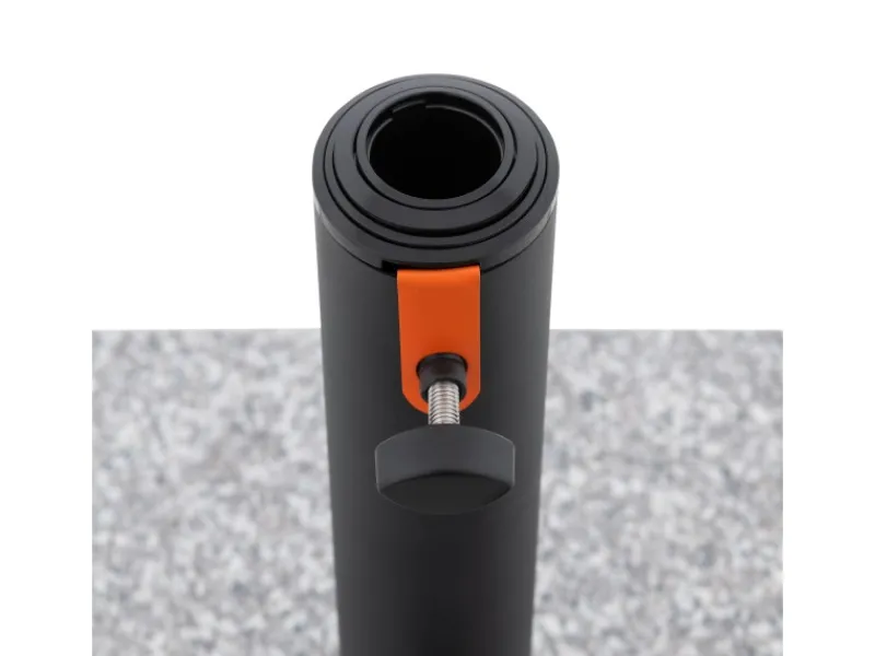 Das schwarz pulverbeschichtete Edelstahlrohr in Kombination mit markanten orangenen MyZone-Akzenten verleiht dem Sockel ein modernes, elegantes Design, das dein Schirm-Setup stilvoll ergänzt.