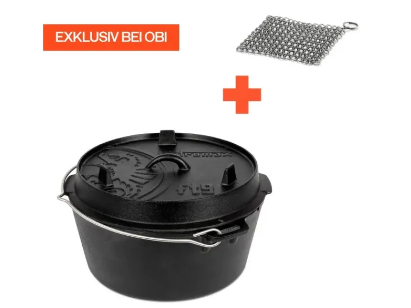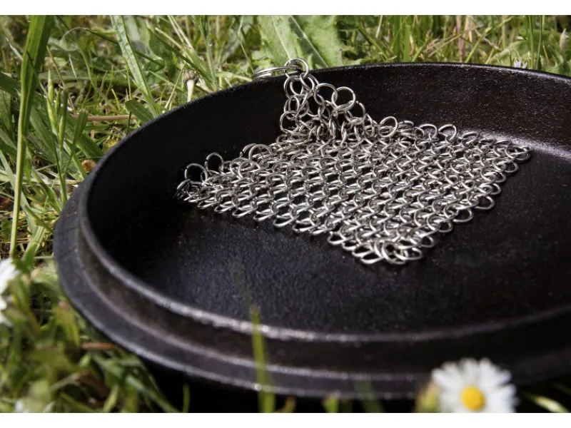 Der passende Ringreiniger ist inklusive und erleichtert dir eine schonende Reinigung des Camp ovens. Du solltest kein Spülmittel und nur warmes Wasser benutzen, damit die Patina nicht beschädigt wird. Der Ringreiniger entfernt Essensreste und Angebranntes, lässt sich leicht mitnehmen und kann praktisch aufgehängt werden.