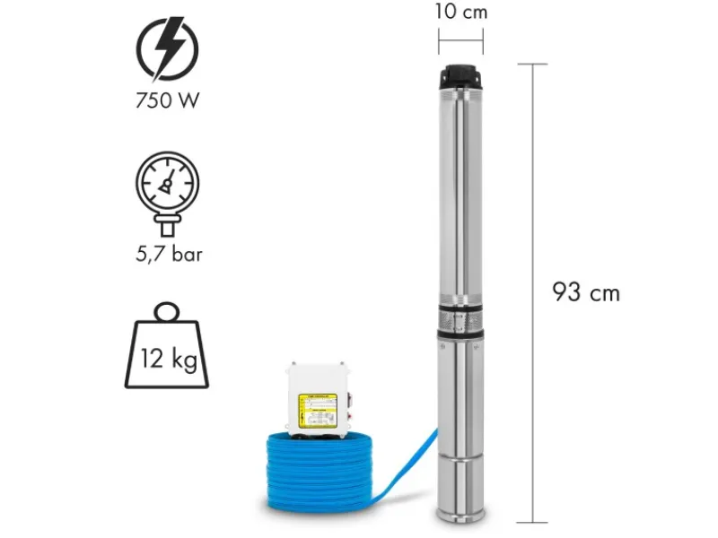 – 1x EBERTH Tiefbrunnenpumpe 4 Zoll / 750W Leistung