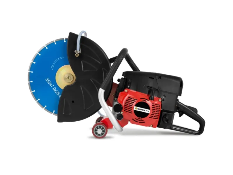 VIELSEITIG: Der EBERTH Benzin Trennschneider eignet sich für Nass- und Trockenschnitte in jedem Material, z.B. Holz, Stein, Asphalt, Beton, Granit, Marmor, Eisen, Stahl. Eine Strom- oder Druckluftversorgung ist nicht nötig
