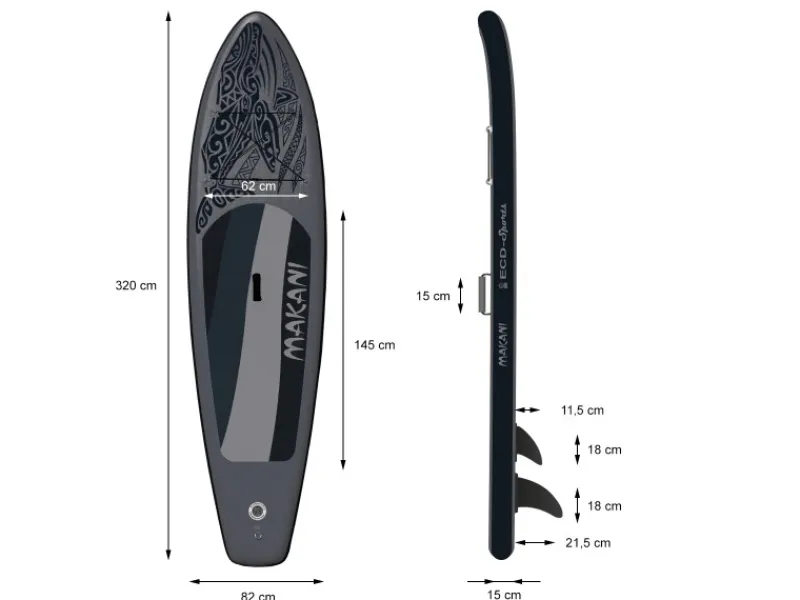 Mit ca. 82 cm Breite und einer Höhe von 15 cm bietet das Board eine hohe Kipp-Stabilität und Steifigkeit – die Gefahr, dass Ihr Board bei höherer Belastung schnell unter Wasser liegt ist somit ausgeschlossen.