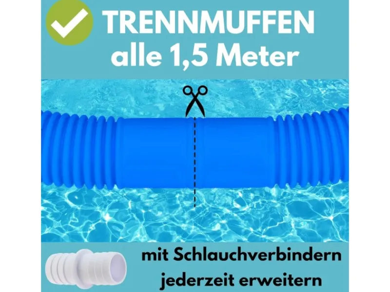 9 m Schlauch, alle 1,5 m teilbar, erweiterbar