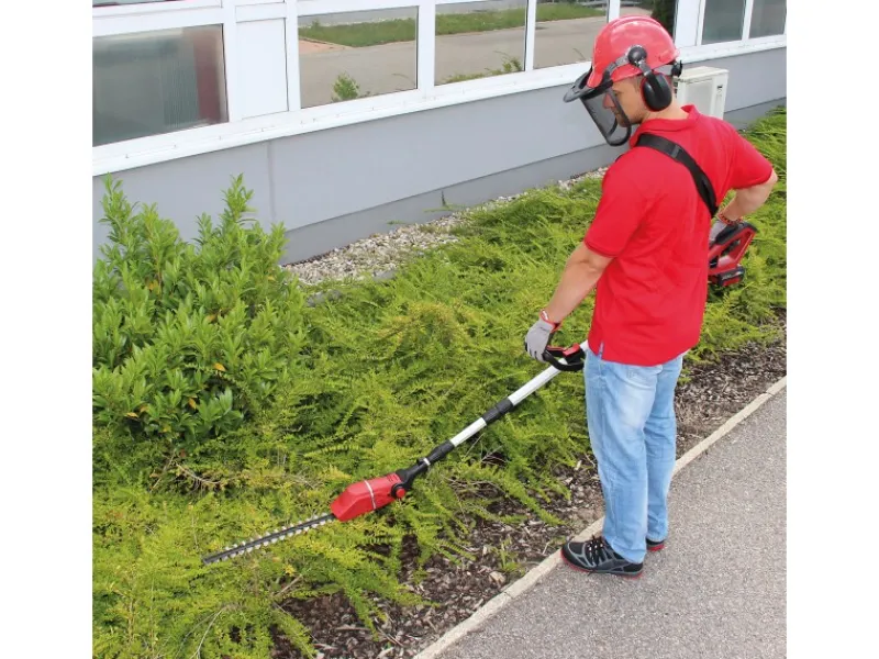 Mit dem Heckenscheren-Aufsatz kannst du höhere Hecken und vor allem die Oberseite der Hecke mühelos zurückschneiden. Auch bodennahe Schneidarbeiten sind ohne lästiges Bücken möglich. Die aus lasergeschnittenem und diamantgeschliffenem Stahl gefertigten Messer sorgen für saubere Schnittresultate.