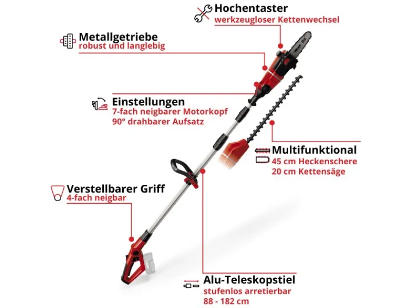 Teleskop-Hochentaster mit Kettensägen- & Heckenscheren-Aufsatz