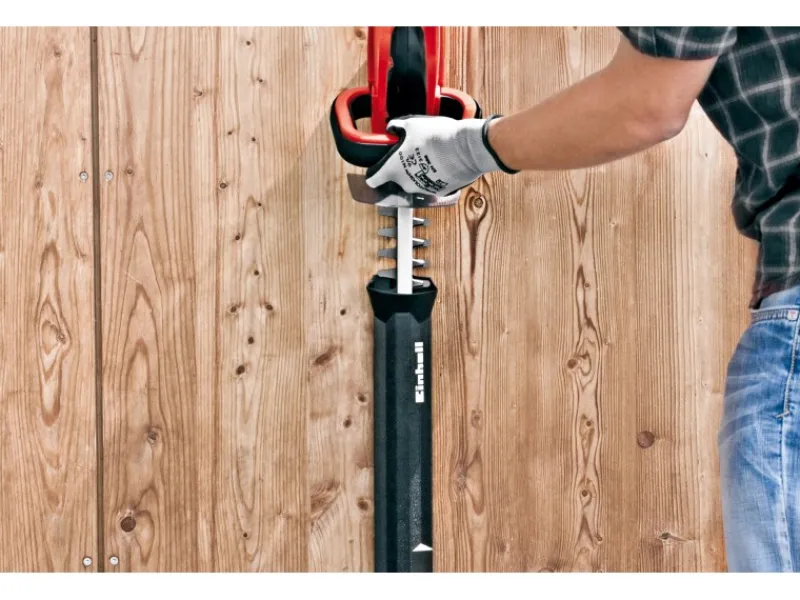 Der vordere Handgriff ist verstellbar, der hintere drehbar, so dass die Heckenschere sehr handlich ist und sich optimal an jede Arbeitssituation anpassen lässt. Im stabilen Köcher lässt sich die GC-CH 1855/1 Li Kit sicher und bequem transportieren oder verstauen.