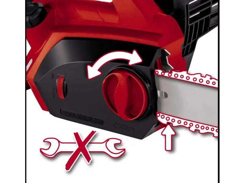 Werkzeuglose Kettenspannung für ein einfaches und schnelles Wechseln und Spannen