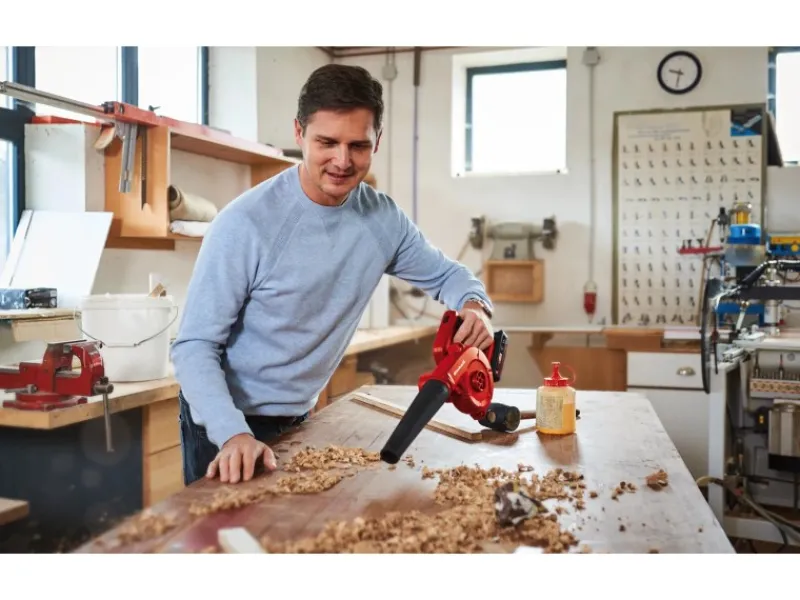 Der Akku-Bläser ist ein Mitglied der Power X-Change Serie und arbeitet mit einer kraftvollen Blasgeschwindigkeit von bis zu 180 km/h und hat eine Leerlaufdrehzahl von bis zu 15.500/min (Umdrehungen) . Dabei kann die Geschwindigkeit individuell in zwei Stufen eingestellt werden, damit Sie sich optimal auf Ihr Arbeitsumfeld anpassen können. Die Drehzahl-Elektronik sorgt für ein anwendungsgerechtes Arbeiten, während der Softgrip einen angenehmen Arbeitskomfort gewährleistet.