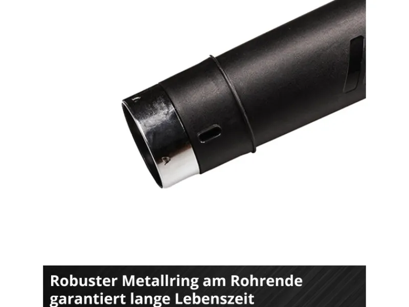 Dank Balance-Handgriff mit Softgrip liegt das Blasgerät stets gut in der Hand und ermöglicht ergonomisches Arbeiten. Ein robuster Metallring am unteren Ende des Blasrohrs dient als Stoßschutz. Das Rohr können Sie werkzeuglos montieren und ebenso unkompliziert wieder abnehmen. In Kombination mit der integrierten Wandhalterung verstauen Sie das Laubgebläse platzsparend.