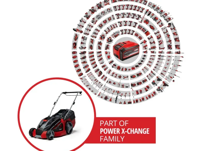 Der Rasenmäher wird mit zwei 18 V Lithium-Ionen-Akkus betrieben. Die Akkus sind Teil der Einhell Power X-Change Serie und mit allen Geräten aus dieser Reihe kompatibel und können flexibel genutzt werden. Mit 3 LEDs wird der Ladezustand der Akkus angezeigt. Durch die moderne Lithium-Ionen-Technologie sind die Akkus nicht anfällig für den Memory-Effekt und lassen sich dank des enthaltenen Schnellladegeräts innerhalb kürzester Zeit wieder aufladen.