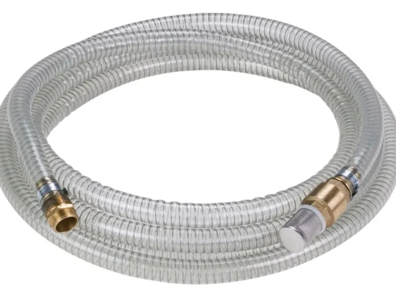 einem beigelegten Messing-Gewindenippel mit Außengewinde 33,3 mm (1 Zoll) ist der Einhell Ansaugschlauch für Gartenpumpen sowie Hauswasserwerke oder Hauswasserautomaten geeignet. Der transparente Gewebeschlauch mit Stahldraht ist extrem stabil und ist so ideal für den Einsatz mit Brauchwasser. Die Saugschlauchgarnitur umfasst ein Adapterstück mit Innengewinde 33,3 mm (1 Zoll) und einen Messing-Gewindenippel mit Außengewinde 33,3 mm (1 Zoll). Zudem ist in der Garnitur ein Messing-Saugkorb mit integriertem Rückschlagventil aus feinmaschigem Edelstahl enthalten.