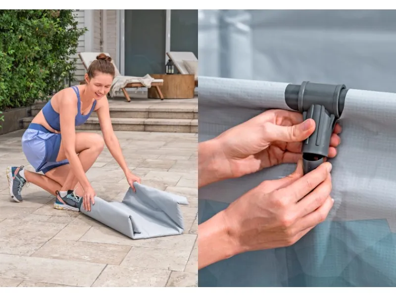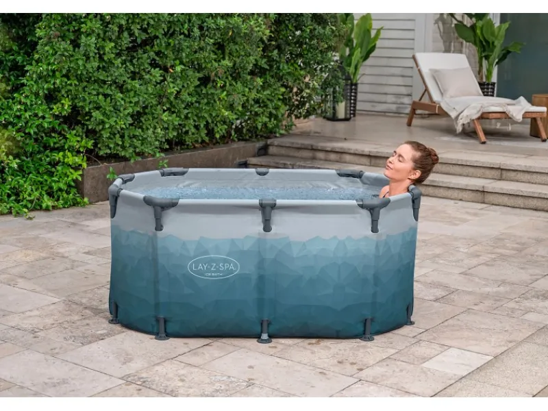Der korrosionsbeständige, verzinkte Stahlrahmen mit Antihaftbeschichtung und das innovative FrameLink-System sorgen für zusätzliche Stabilität und Langlebigkeit. Die T-Verbinder aus Kunststoff gewährleisten eine einfache und sichere Montage des Rahmens. Das durchdachte Design sorgt dafür, dass das Eisbad allen Wetterbedingungen standhält, sei es Sommerhitze oder Winterfrost.