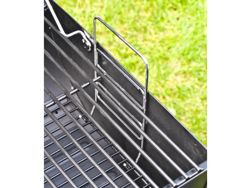 Der Smoker verfügt über einen praktischen höhenverstellbaren Kohlerost. Je nachdem, wie weit die Glut vom Grillrost aus emailliertem Stahl entfernt ist, verändert sich die Temperatur am Grillgut. Zusammen mit dem integrierten Deckelthermometer und dem Lüftungsschieber besitzen Sie die volle Kontrolle und Übersicht.