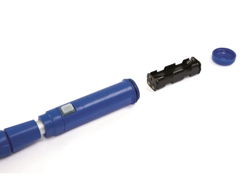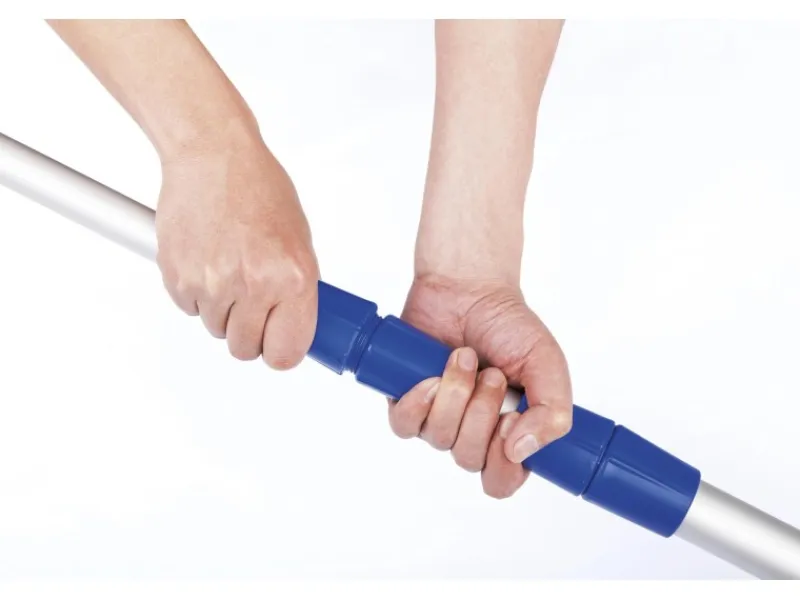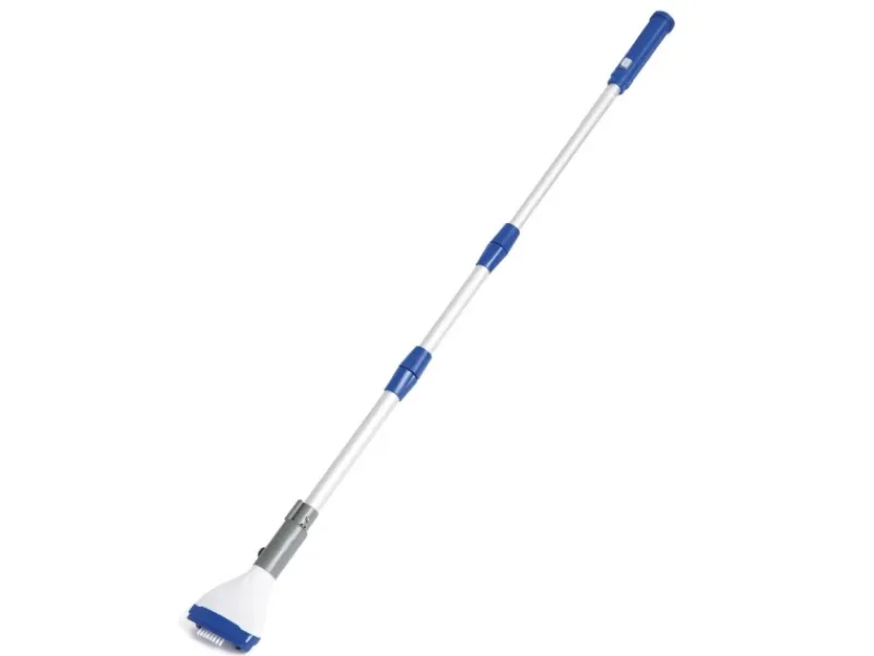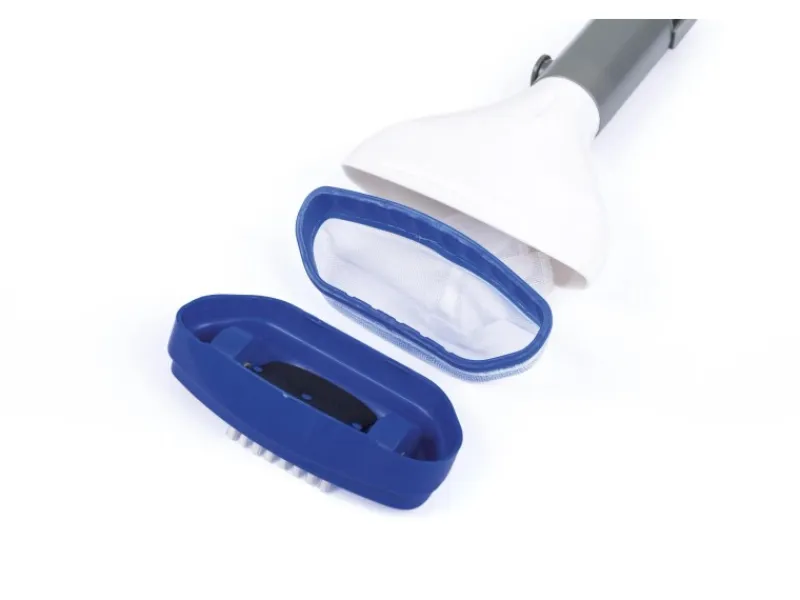 Der Flowclear Vakuum-Poolreiniger AquaScan von Bestway ist ein praktisches Hilfsmittel, um Ihren Poolboden gründlich & effektiv zu säubern. Er verfügt über eine batteriebetriebene Pumpe zum Erzeugen der Saugkraft, wodurch keine Schläuche oder Elektrokabel benötigt werden. Für ein müheloses Gleiten sorgen Rollen an der Unterseite des Vakuumsaugers. Die Teleskopstange ist bis zu einer Länge von 1,5 m ausziehbar. Im Lieferumfang enthalten sind Schmutzbeutel, die einfach zu entleeren sind. Die acht benötigten AA-Batterien für die Inbetriebnahme des Vakuumsaugers sind nicht im Set enthalten.