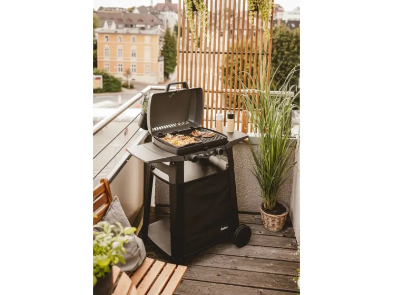 Damit verwandelst du deinen Balkon in eine komplette Outdoorkitchen – Grillen, Kochen, Backen. Der emaillierte Gussrost bietet dir die Wahl zwischen einem scharfen Branding oder einer flachen Pfanne für saftiges Braten. Robust, aber dennoch leicht: Die Alugussbrennkammer macht den Urban II langlebig und handlich zugleich. Die stabilen abnehmbaren Seitentische bieten zusätzlichen Platz. Mit dem optionalen Trolley erhält der Grill ein echtes Up-grade: Mehr Höhe, mehr Stauraum – und noch mehr Grillspaß. Die Urban II Serie bringt deinen Balkon garantiert zum Glühen – und hebt dein Grillvergnügen auf die nächste Etage.