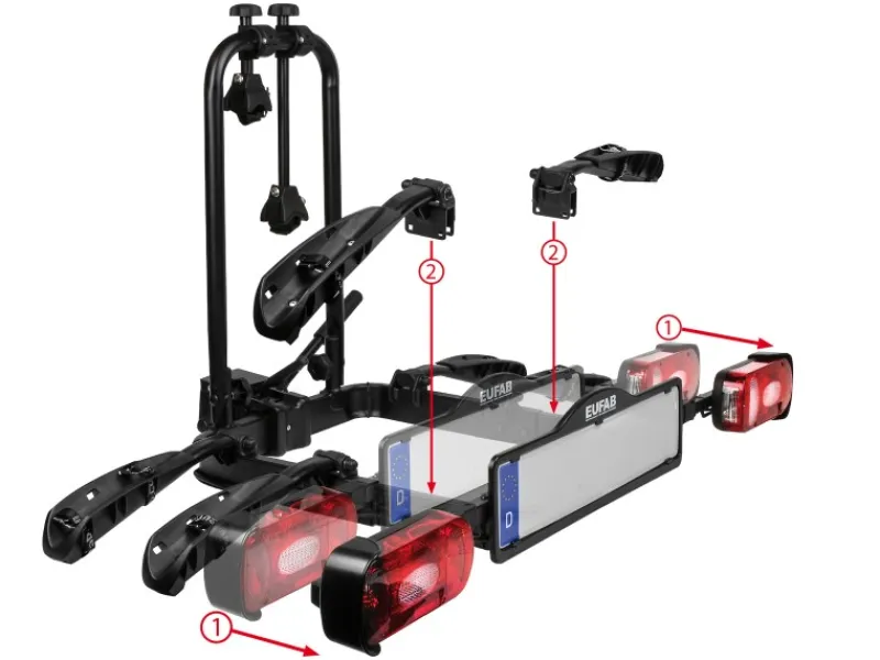 Die Eufab Erweiterung eignet sich für den Transport eines 3. Fahrrades auf dem Eufab Fahrradträger Crow Plus. Die Montage erfolgt in nur wenigen Schritten. Das benötigte Montagematerial ist im Lieferumfang enthalten.