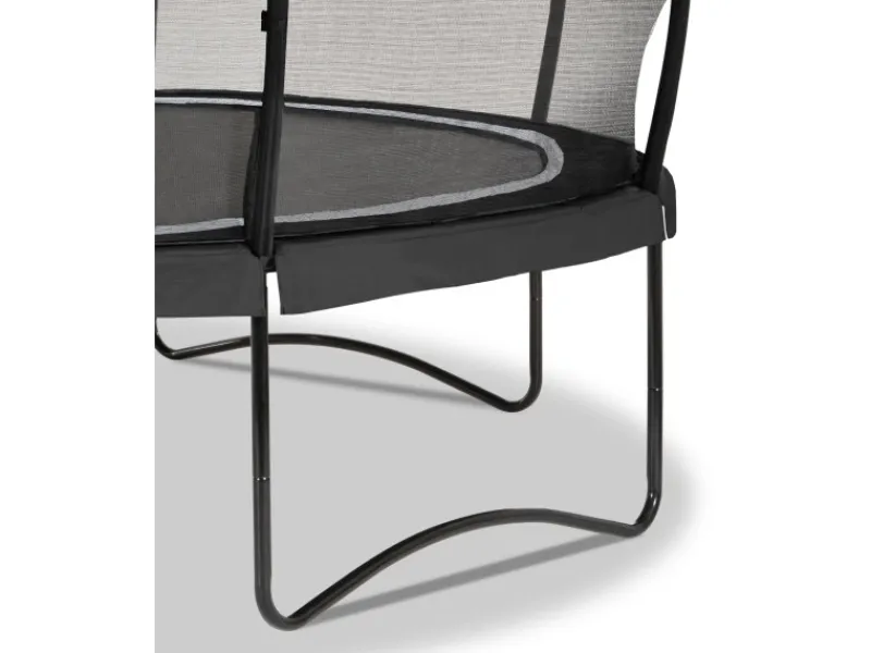 Das EXIT Allure Classic Trampolin ist ein Trampolin mit einem Schutzrand und einem Sicherheitsnetz. Dank des EXIT Foot Protection Systems (FPS), einem Netz zwischen dem Sprungtuch und dem Schutzrand des Trampolins, geraten Trampolinspringer nie mit den Füßen zwischen die Sprungfedern. Das mitgelieferte Sicherheitsnetz hat einen überlappenden Eingang, der sich automatisch schließt. Die Rohre des Sicherheitsnetzes sind außerdem mit Schaumstoff überzogen. Der Trampolinrahmen ist galvanisiert und pulverbeschichtet und hat daher eine lange Lebensdauer. Darüber hinaus ist der Schutzrand dieses Trampolins mit einer schützenden, wasserabweisenden Pvc-Schicht versehen. Mit Hilfe der gebogenen Rohre und einem Glasfaserring wird das Sicherheitsnetz straff in Form gehalten. Das Allure Classic Trampolin hat doppelkonische Federn, die für einen geschmeidigen Sprung und eine weiche Landung sorgen.