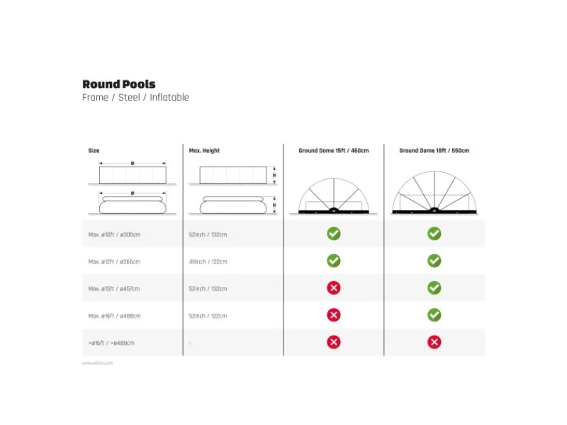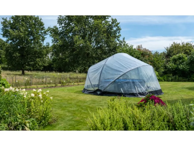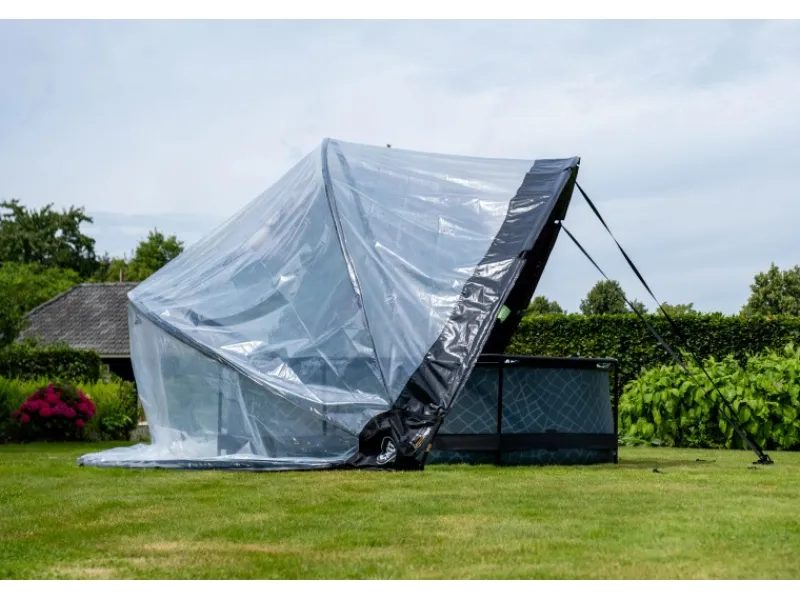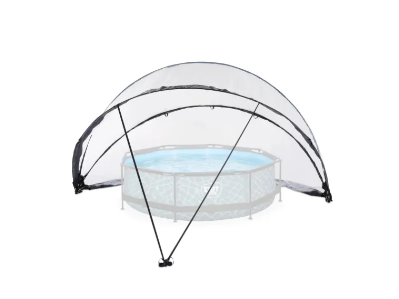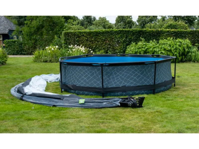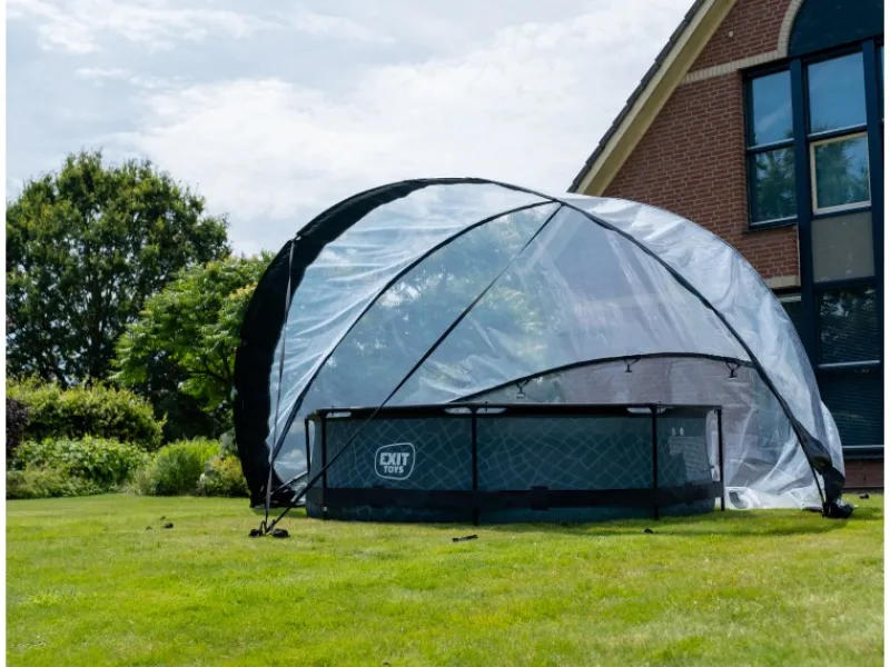 Die Exit Poolabdeckung ermöglicht es, deinen Pool im Handumdrehen abzudecken und ist für sämtliche Arten von Aufstellpools wie aufblasbare, Stahlwand- oder Rahmenpools geeignet. Diese Abdeckung schützt deinen Pool vor Wind, Regen und Schmutz. Außerdem wird das Poolwasser so auch gleichzeitig erwärmt. Die Poolkuppel, die auf dem Boden platziert wird, kann offen- und zugeklappt werden und ermöglicht auch eine halboffene Position. Die Poolüberdachung von Exit Toys ist dank der robusten Glasfaserstücke und der Flügelscharniere aus Metall sehr robust und bleibt selbst bei starkem Wind an Ort und Stelle. Zur Befestigung auf einem weichen Boden sind Bodenanker für zusätzlichen Halt im Lieferumfang enthalten. Möchtest du die Abdeckung auf einem harten Boden platzieren? Die Abdeckung bietet die Möglichkeit, mit dem eigenen Befestigungsmaterial den Rahmen fest auf der Holzterrasse, auf einer Stein- oder Betonterrasse oder sonstigen harten Böden aufzustellen. Die Exit Poolabdeckung ist mit zwei Personen schnell und einfach aufgebaut. Nach der Montage kannst du die Abdeckung allein mühelos schließen oder dank der verstellbaren Gurte in die halboffene Position einstellen.Die Exit Poolabdeckung wurde nach dem Exit-Konzept entwickelt. Erstens ist die Abdeckung zu 100 % reparierbar. Das heißt, dass es für jedes Einzelteil auch Ersatzteile gibt. Außerdem ist die Abdeckung teilweise recycelbar. Das liegt daran, dass sie größtenteils aus Monomaterialien gefertigt ist. Dabei handelt es sich jeweils um sortenreines Material, das aus nur einem Rohstoff besteht. Diese Materialien sind leichter zu recyceln, da keine Rohstofftrennung erforderlich ist.