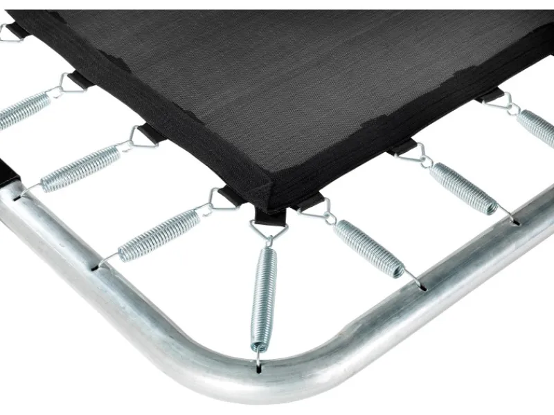 Das EXIT Silhouette Bodentrampolin ist ein rechteckiges Trampolin. Das Sicherheitsnetz, das mit diesem Trampolin mitgeliefert wird, ist mit gebogenen Ständern ausgestattet, sodass das Netz straff gespannt steht. Der hochwertige Schutzrand deckt die galvanisierten Federn völlig ab und ist mit einem speziell entwickelten Fußschutzsystem ausgerüstet, damit dein Fuß nie zwischen die Federn kommen kann. Die soliden Federn stehen für eine gute Sprungkraft Garant. Der Rahmen des Silhouette Trampolins ist galvanisiert und pulverbeschichtet, damit Rost keine Chance hat. Auf den rechteckigen EXIT Silhouette Trampolinen erlebst du endlos viel Springspaß!